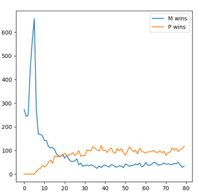 C6 - (0.51)Performance is more stable up to epoch 40. By lowering the clamp, P contributes earlier, correcting some of M´s early missteps.